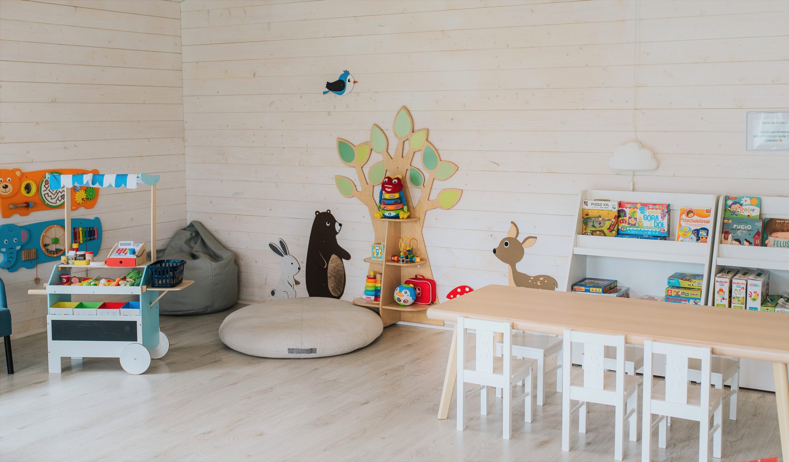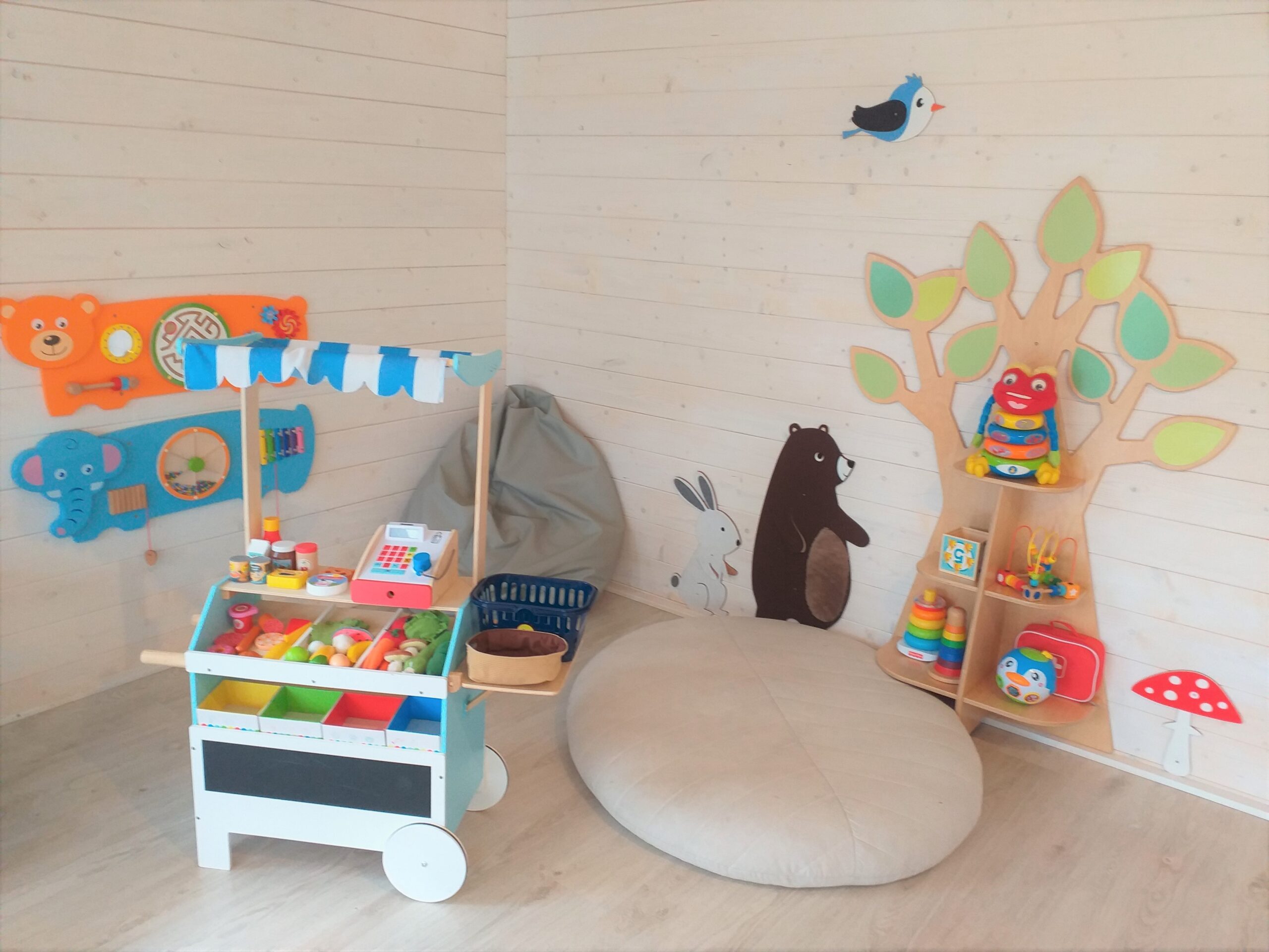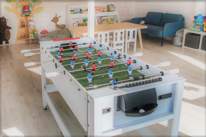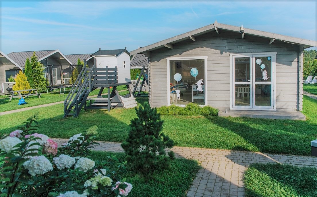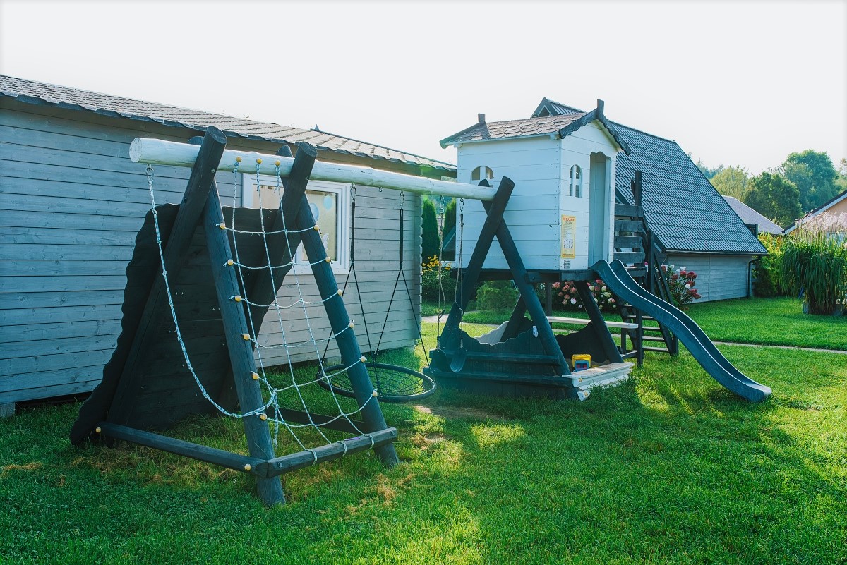 Domek powstał z myślą o naszych najmłodszych Gościach. To miejsce, w którym niezależnie od pogody można miło spędzić czas. Dzieci mogą tu rysować, czytać książeczki, grać w gry planszowe czy „gotować”. Jest on usytuowany w centralnej części ośrodka a co za tym idzie dzieci zawsze są „na oku” swoich opiekunów.